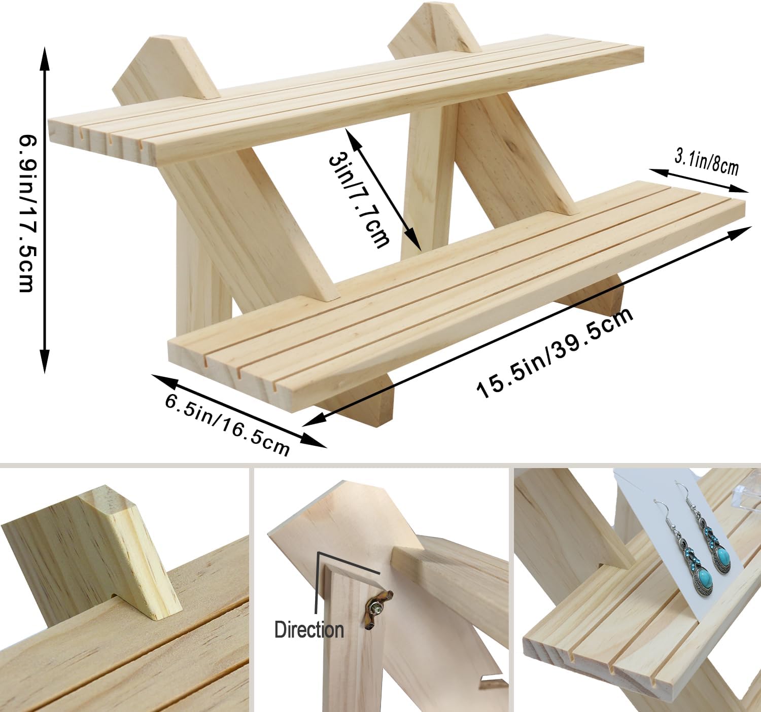 √Easy to Install and Carry – The 2 tier wooden shelves are easy to assemble in a few minutes, and it is easy to disassemble too,Earring Display Stands are ideal for professional use at trade shows, businesses, or retail storefront displays.(Need Assemble by yourself)