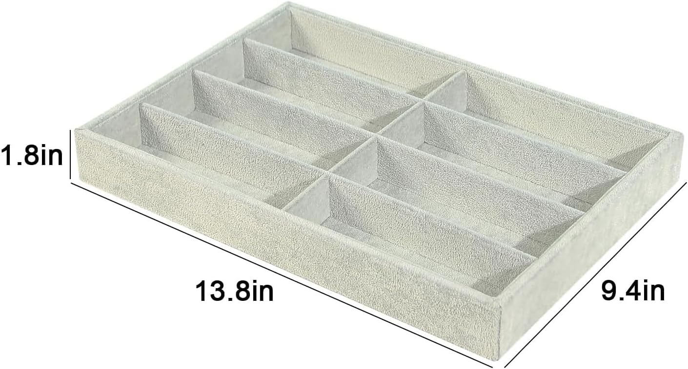 Jewelry Sunglasses Organizer Tray, Grey Velvet Eyeglasses Display Tray Box, Glasses Organize Storage Holder for Home Desk or Selling Show Display